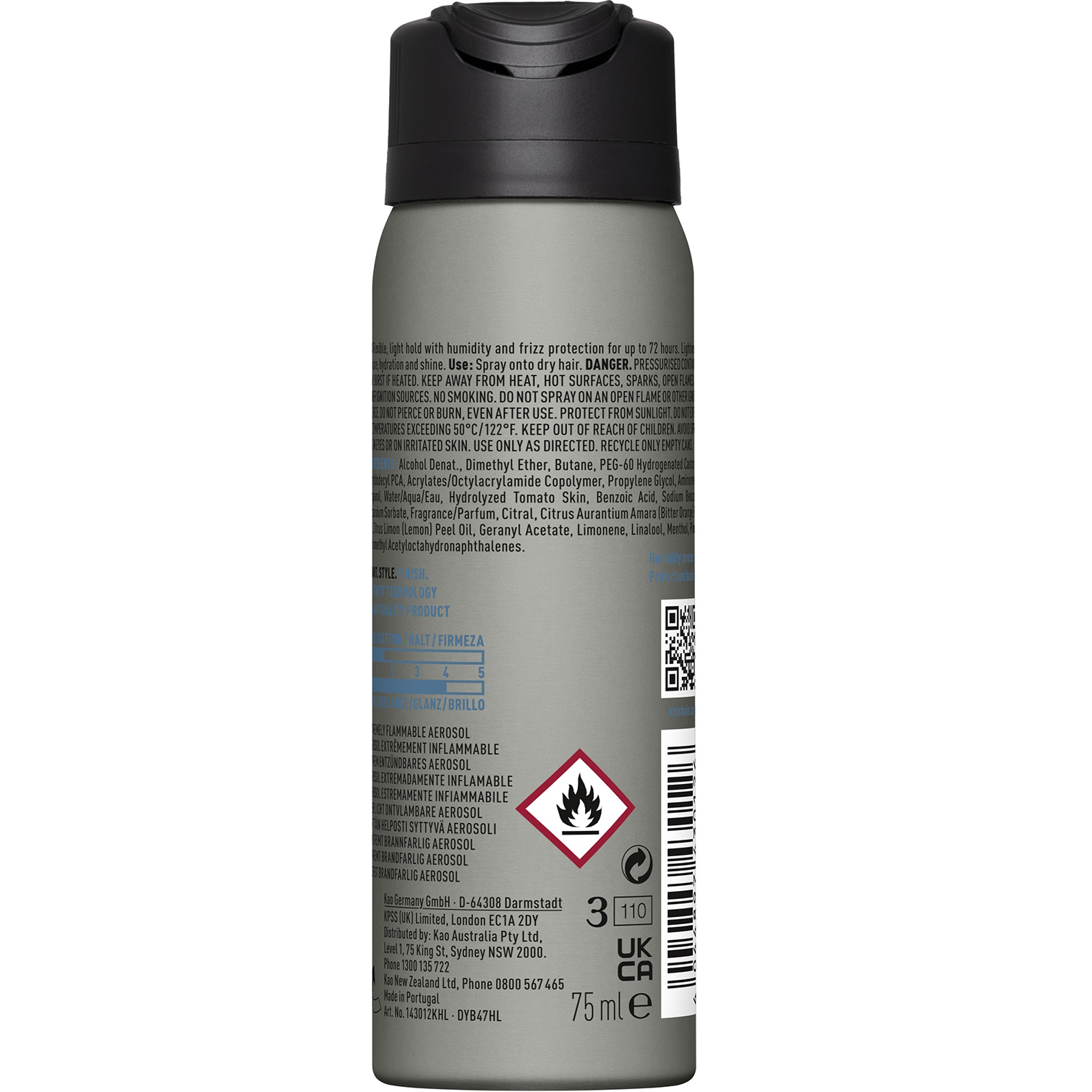 , Alcohol Denat., Dimethyl Ether, Butane, PEG-60 Hydrogenated Castor Oil, Octyldodecyl PCA, Acrylates/Octylacrylamide Copolymer, Propanediol, Aminomethyl Propanol, Water/Aqua/Eau, Hydrolyzed Tomato Skin, Benzoic Acid, Sodium Benzoate, Potassium Sorbate, Fragrance/Parfum, Citral, Citrus Aurantium Peel Oil, Citrus Limon (Lemon) Peel Oil, Geranyl Acetate, Limonene, Linalool, Menthol, Pinene, Tetramethyl
