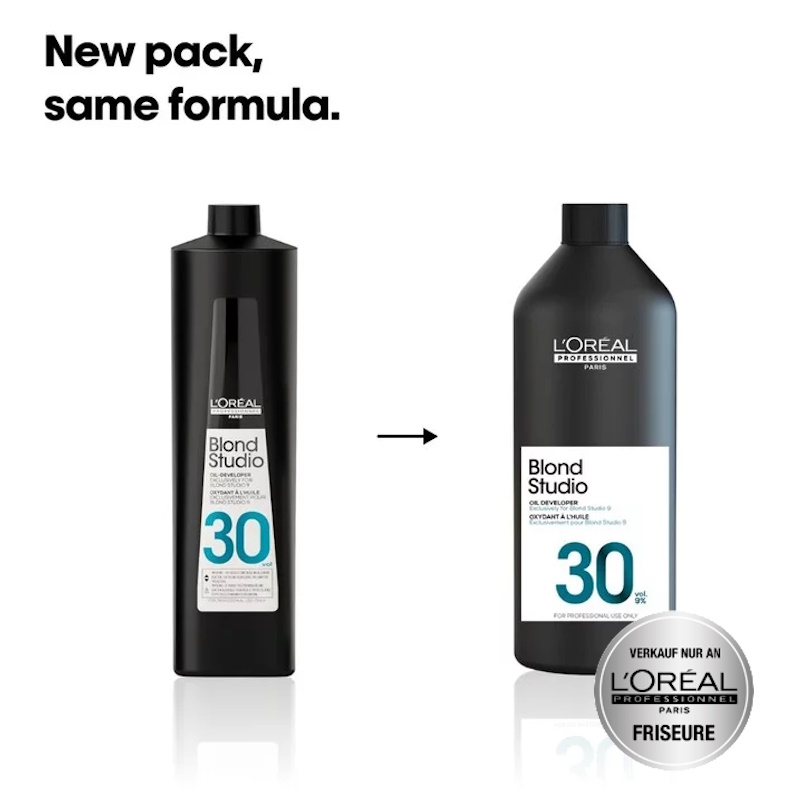 • Mélangez les produits dans un endroit bien ventilé. Utilisez uniquement les révélateurs d'huile Blond Studio recommandés 20 ou 30 volumes.