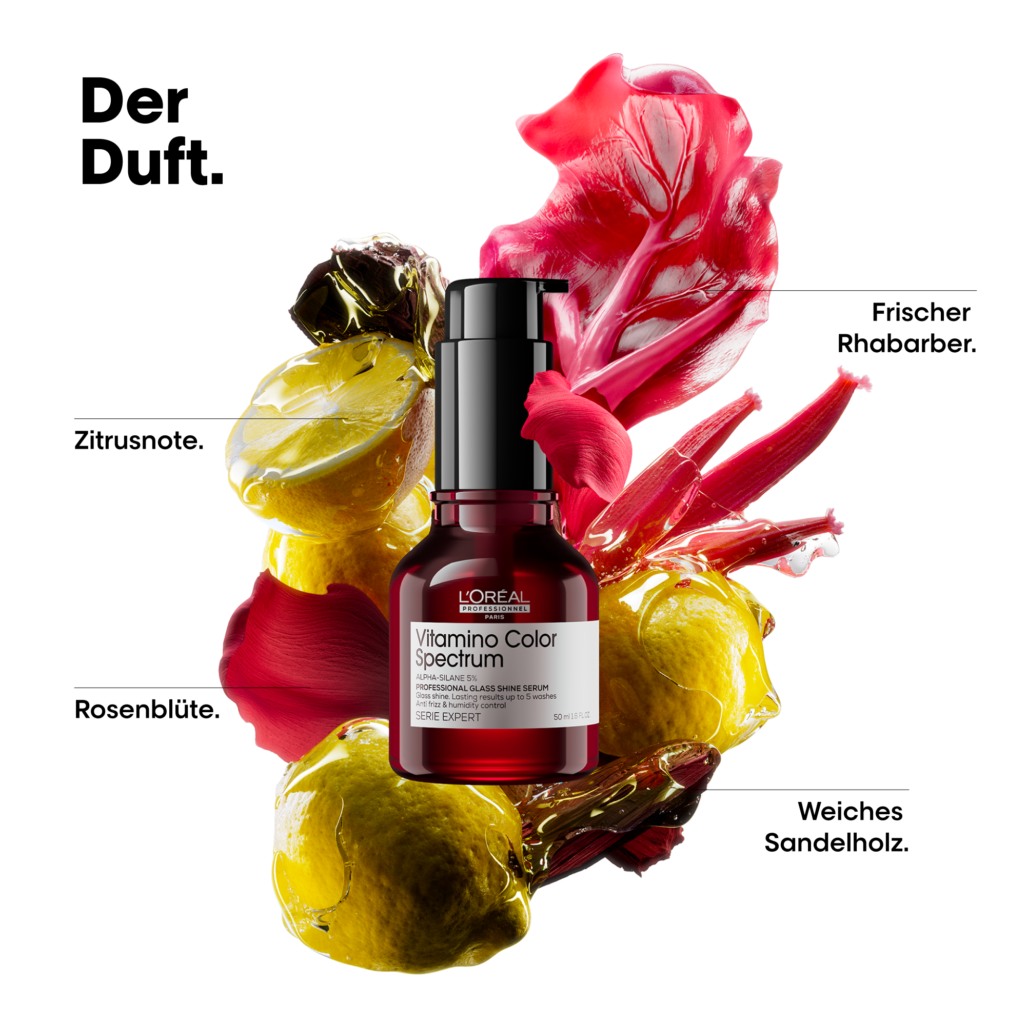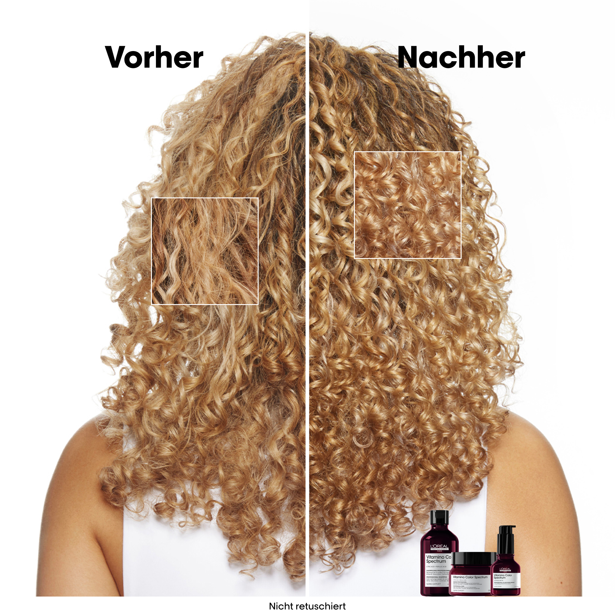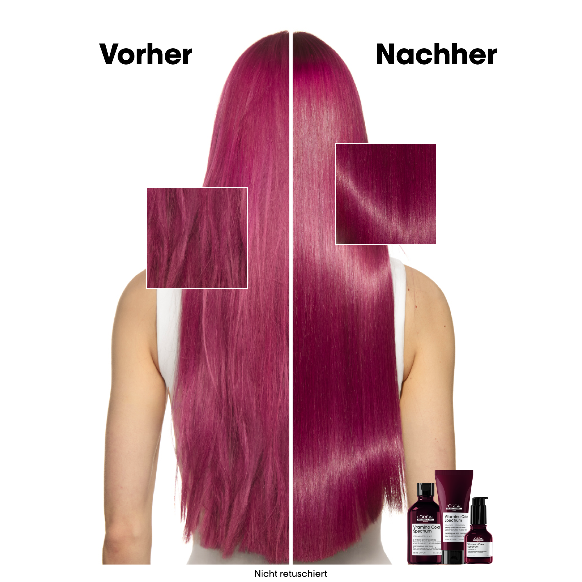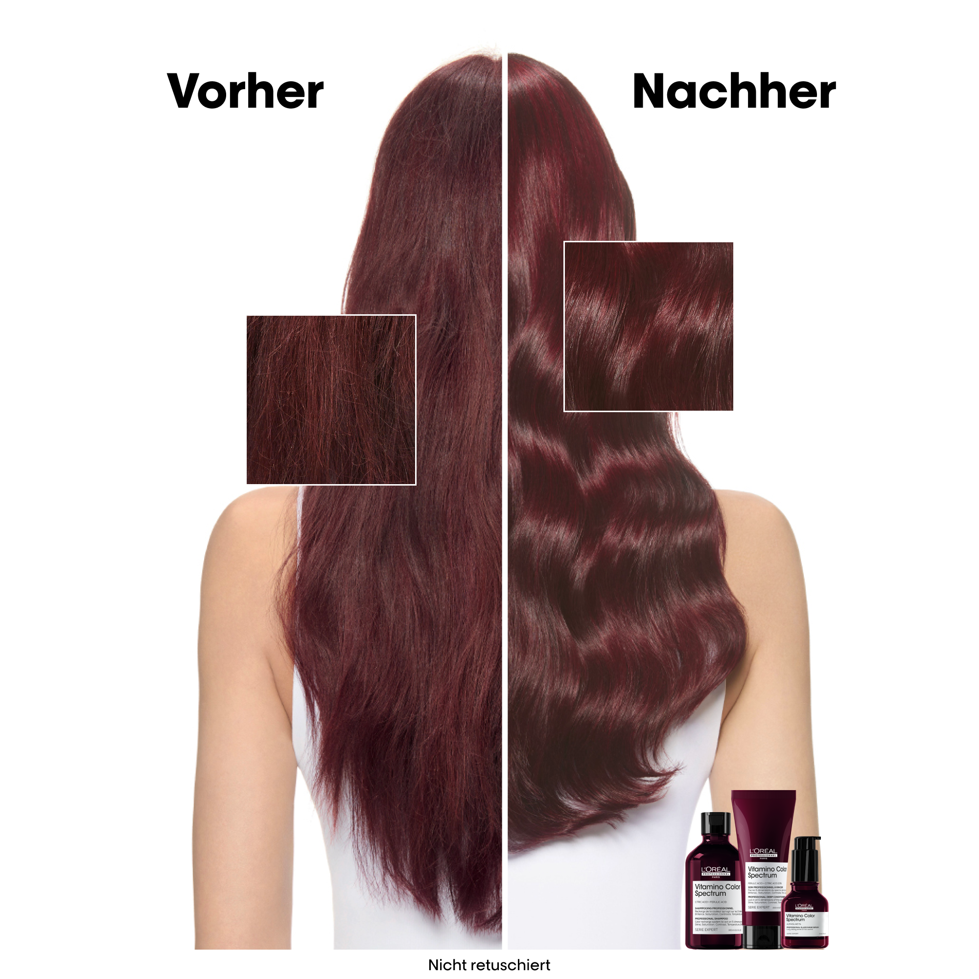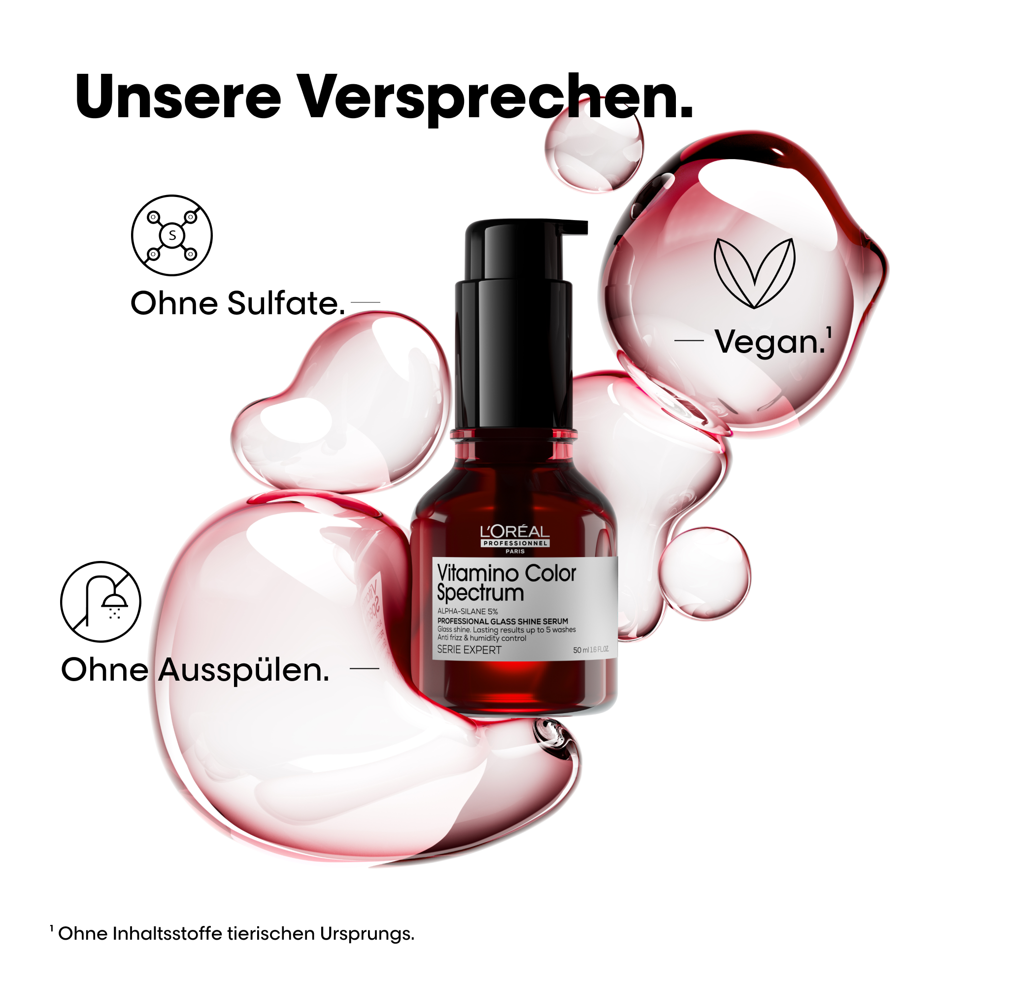 Le sérum Vitamino Color Spectrum Glass Shine de L'Oréal Professionnel offre une brillance instantanée et une brillance longue durée jusqu'à 5 lavages.* Enrichi à 5 % d'alpha-silane, le sérum forme une couche protectrice à la surface des cheveux lorsqu'il est activé par la chaleur. Résultat : une brillance ultra-forte comme du verre.* Contrôle durable des frisottis jusqu'à 72 heures.* Protection contre l'humidité jusqu'à 80 %.* Protection contre la chaleur jusqu'à 230°C.* Les cheveux sont immédiatement plus soignés, plus lisses et plus doux. Astuce de pro : pour les cheveux colorés, utilisez le sérum avec la routine complète Vitamino Color Spectrum pour conserver l'éclat de la couleur du premier jour de coloration. * - Enveloppe les cheveux d'une brillance instantanée comme du verre. Brillance longue durée jusqu'à 5 lavages. - Tous types de cheveux, cheveux colorés, cheveux ternes, cheveux normaux * Test instrumental.