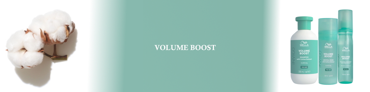INVIGO Volume Boost avec Volume Boost-Blend™ : Nos formules légères apportent souplesse et brillance sans alourdir le cheveu. Les polymères de force et de ressort ""Bodifying"" entourent les fibres de chaque cheveu pour les stabiliser et aident à créer plus de volume pendant le coiffage. Le coton est une fibre qui offre la stabilité et la douceur nécessaires pour redonner du volume aux cheveux fins.