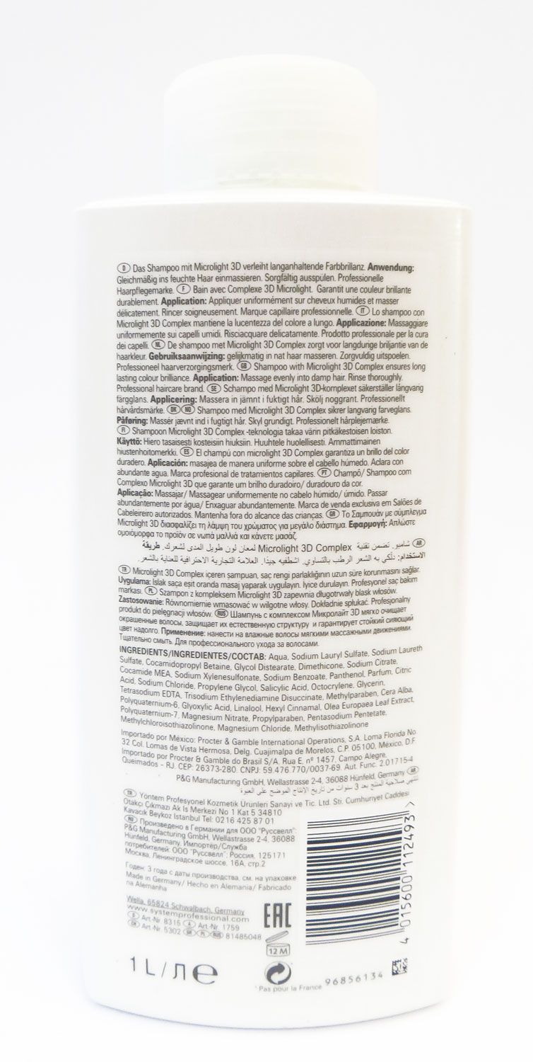 Enrichi en extrait de feuilles d'olivier et Pro Vitamine B5, ce shampooing professionnel dispose Wella Spes innovante couleur 3D Protect technologie qui fonctionne avec vos poils propre structure pour protéger contre la décoloration et les agresseurs environnementaux.